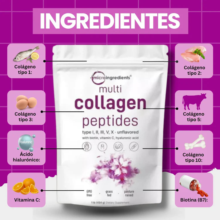 COLAGENO PURO MULTIPLES VITAMINAS 5 EN 1 – FORTALECE ARTICULACIONES, PIEL Y CABELLO
