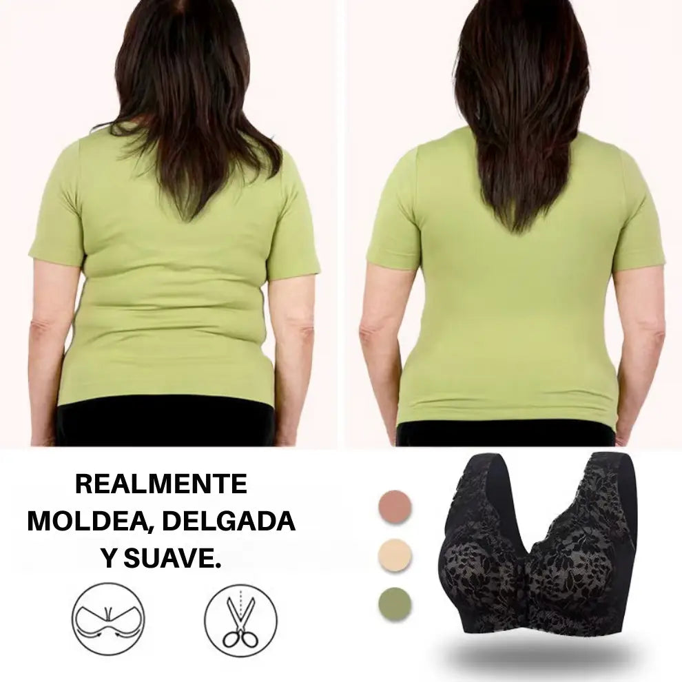 Diseñado con copas cosidas en 3D, alas laterales anchas, tirantes muy acolchados y panel posterior en forma de U, garantiza el máximo soporte contra la flacidez mientras suaviza los bultos de la espalda y corrige la grasa de las axilas para una silueta favorecedora.