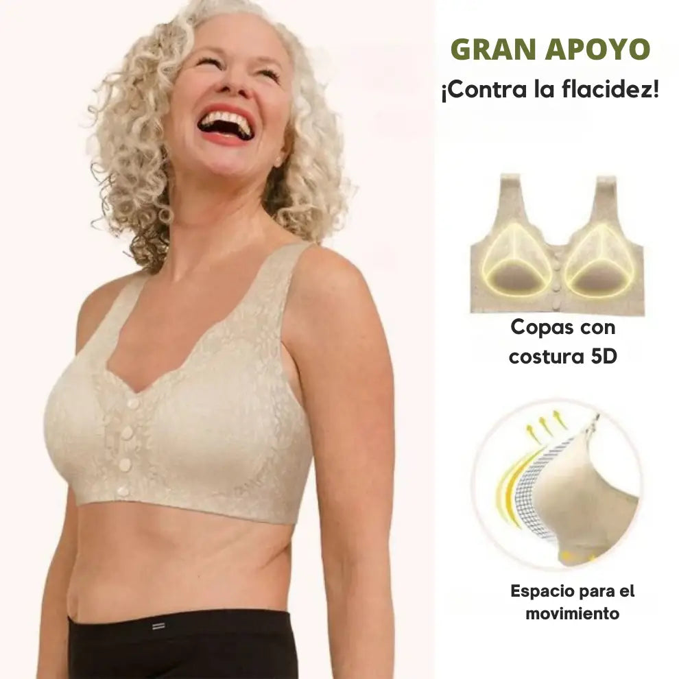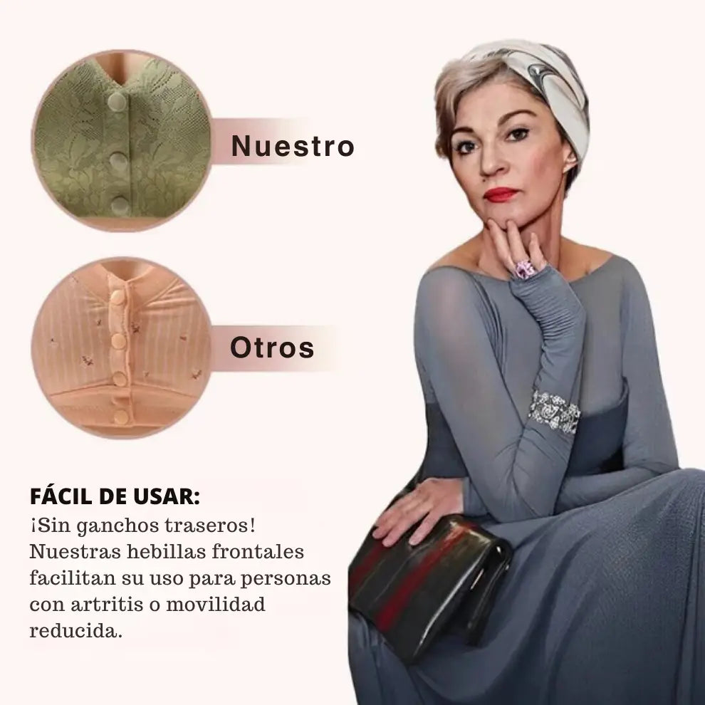 Se siente 100% libre de sostén. Para muchas mujeres, ponerse un sostén es difícil, ya que requiere movimientos de torsión. Por eso los sostenes de cobertura completa con cierre frontal son tan geniales. Se colocan como un chaleco. Es suave y fácil.
