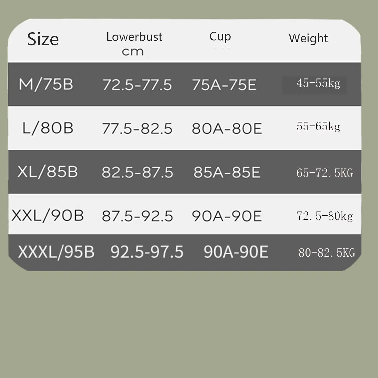 - Aviso: para satisfacer las diferentes demandas de tallas de pecho de las mujeres, te ofrecemos diferentes tamaños del sujetador para que elijas, consulta la tabla de tallas en la imagen para más detalles.